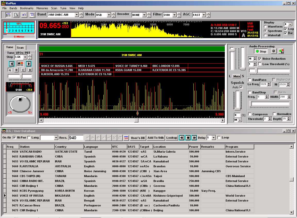 Short Wave Receiver Controller / DSP Audio Processor / Digital Modes Decoder / DataBase Manager Software